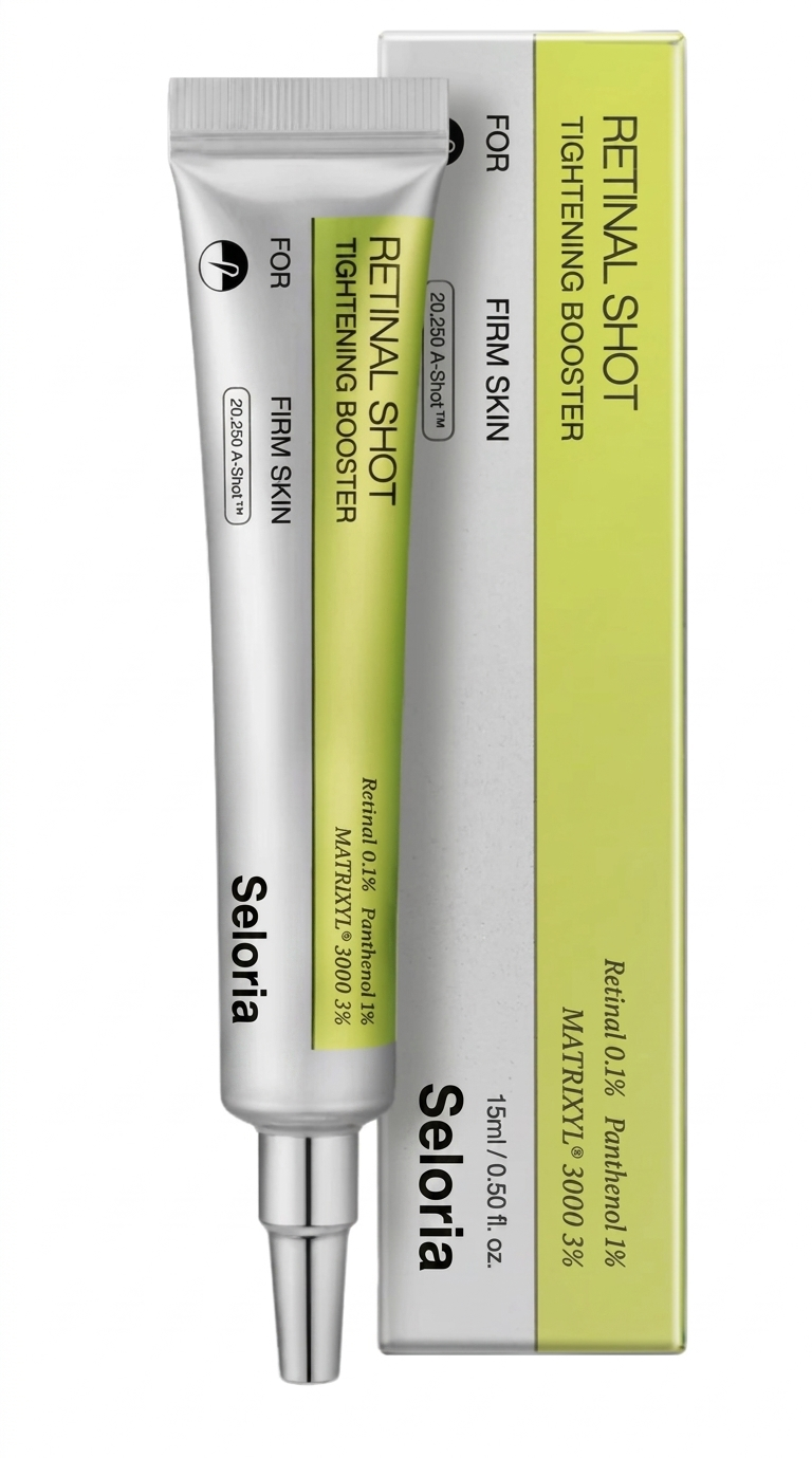 Découvrez le Retinal Shot Tightening Booster de Seloria, un soin avancé formulé avec du rétinal pur et du Matrixyl™ 3000. Pensé pour améliorer la fermeté de la peau, lisser les ridules et redonner de l’éclat au teint, il s’intègre facilement à votre routine pour une peau visiblement plus lisse et revitalisée.